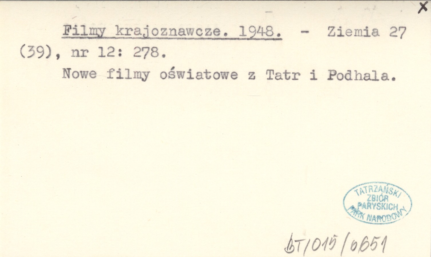 Ziemia, 27 (39), nr 12: 278. Nowe filmy oświatowe z Tatr i Podhala.
