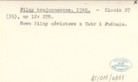 Filmy o górach. Produkcja Działu Filmów Ośw. P. P. Film Polski. 1948