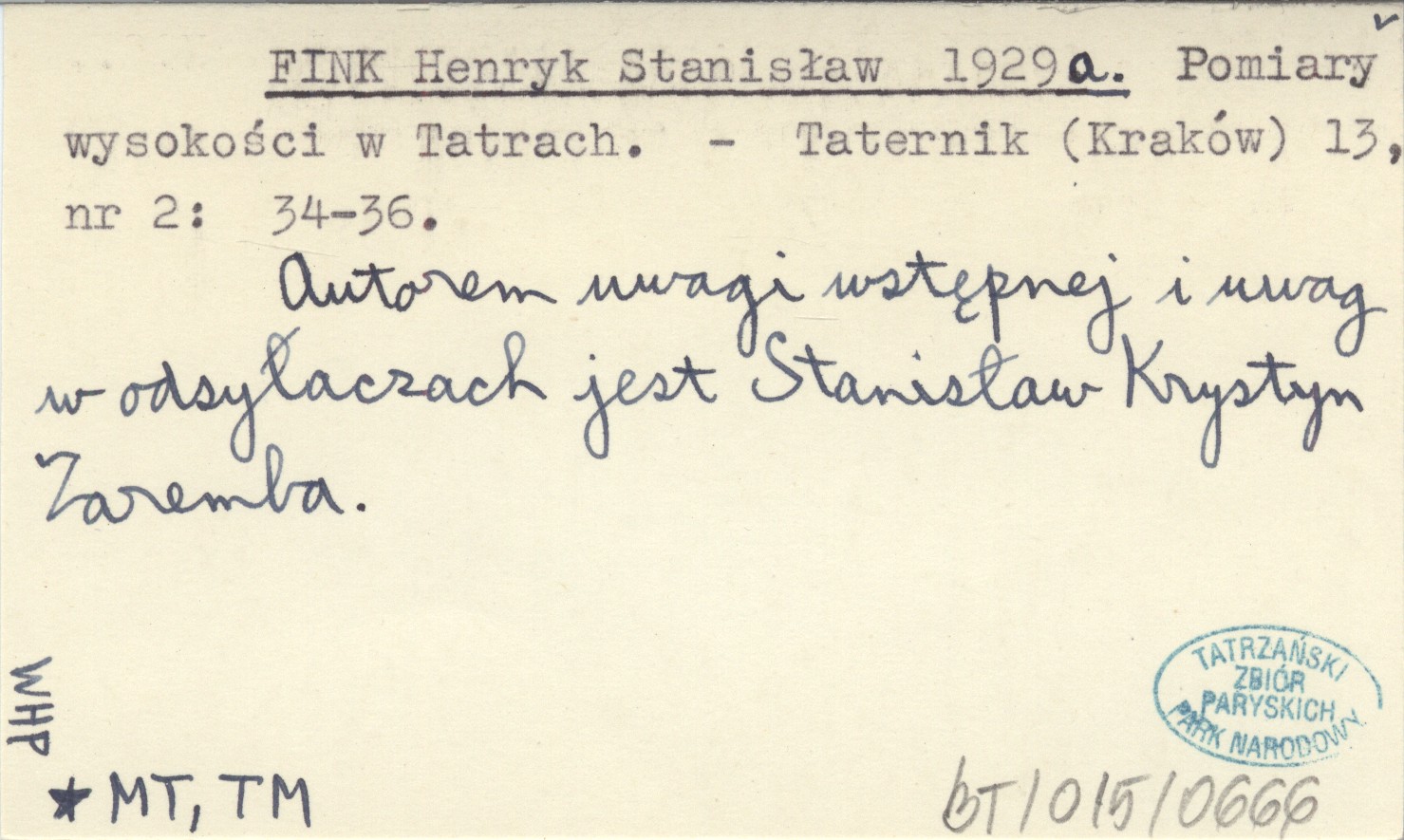 Projekt Digitalizacja fiszek z Bibliografią Tatr i Podtatrza Witolda Henryka Paryskiego jest finansowany ze środków Ministra Kultury i Dziedzictwa Narodowego oraz Tatrzańskiego Parku Narodowego.