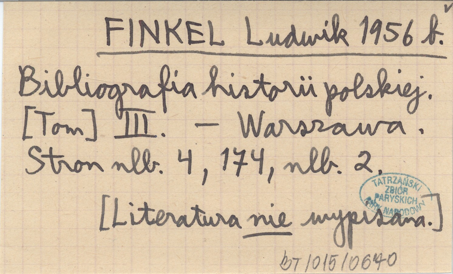 FINKEL Ludwik 1956 b Bibliografia historii polskiej. [Tom] III.