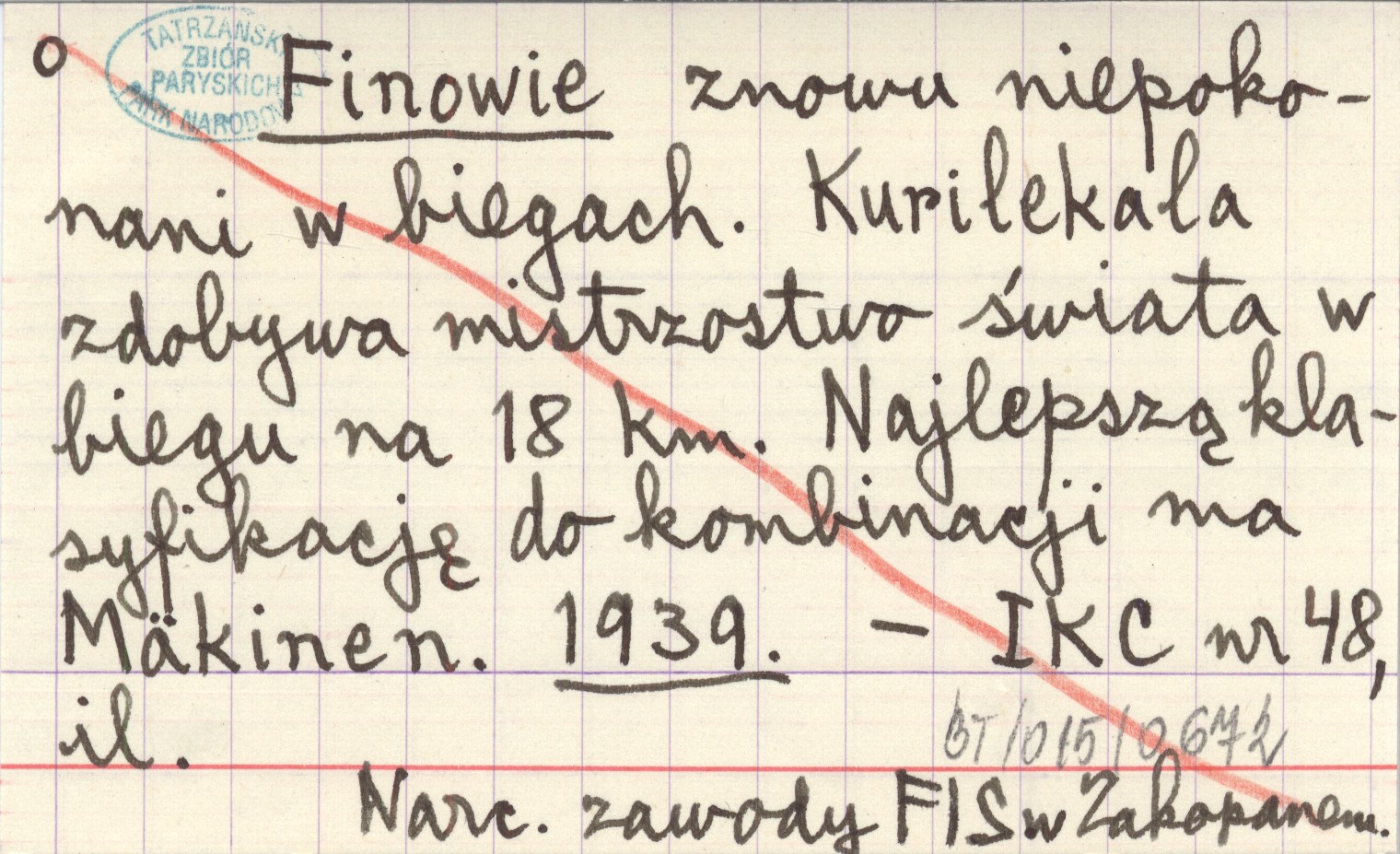 Finowie znowu niepokonani w biegach. Kurilekala zdobywa mistrzostwo świata w biegu na 18 km. Najlepszą klasyfikację do kombinacji ma Mäkinen. 1939