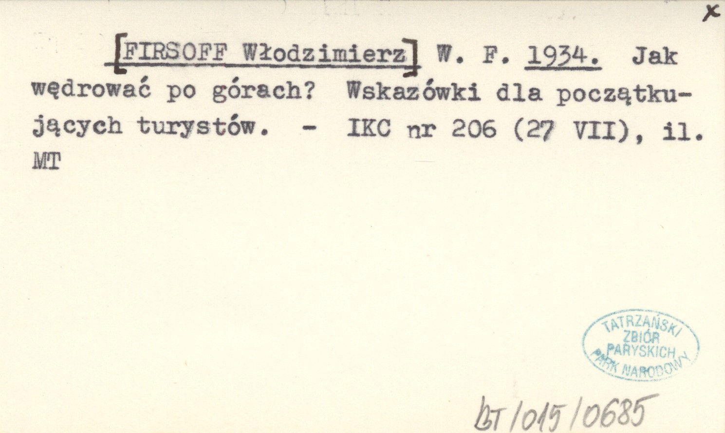 W. F. [FIRSOFF Włodzimierz] 1934 Jak wędrować po górach? Wskazówki dla początkujących turystów.
