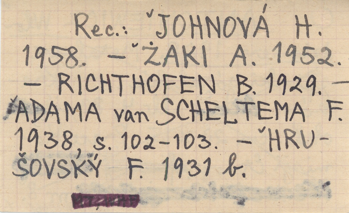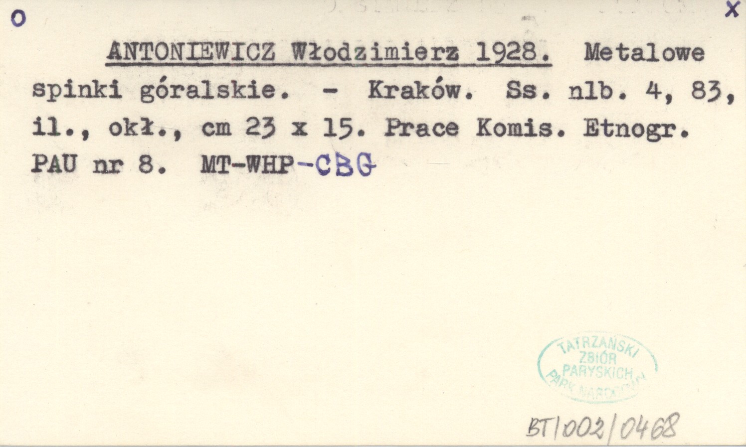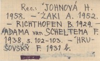 Prace Komisji Etnograficznej PAU (Kraków) , Nr 8: [4], 83, il., okł., 23x15 cm. REC: JOHNOVÁ H. 1958.- ŻAKI A. 1952.- RICHTHOFEN B. 1929.- ADAMA von SCHELTEMA F. 1938, s. 102-103.- HRUŠOVSKÝ F. 1931 b