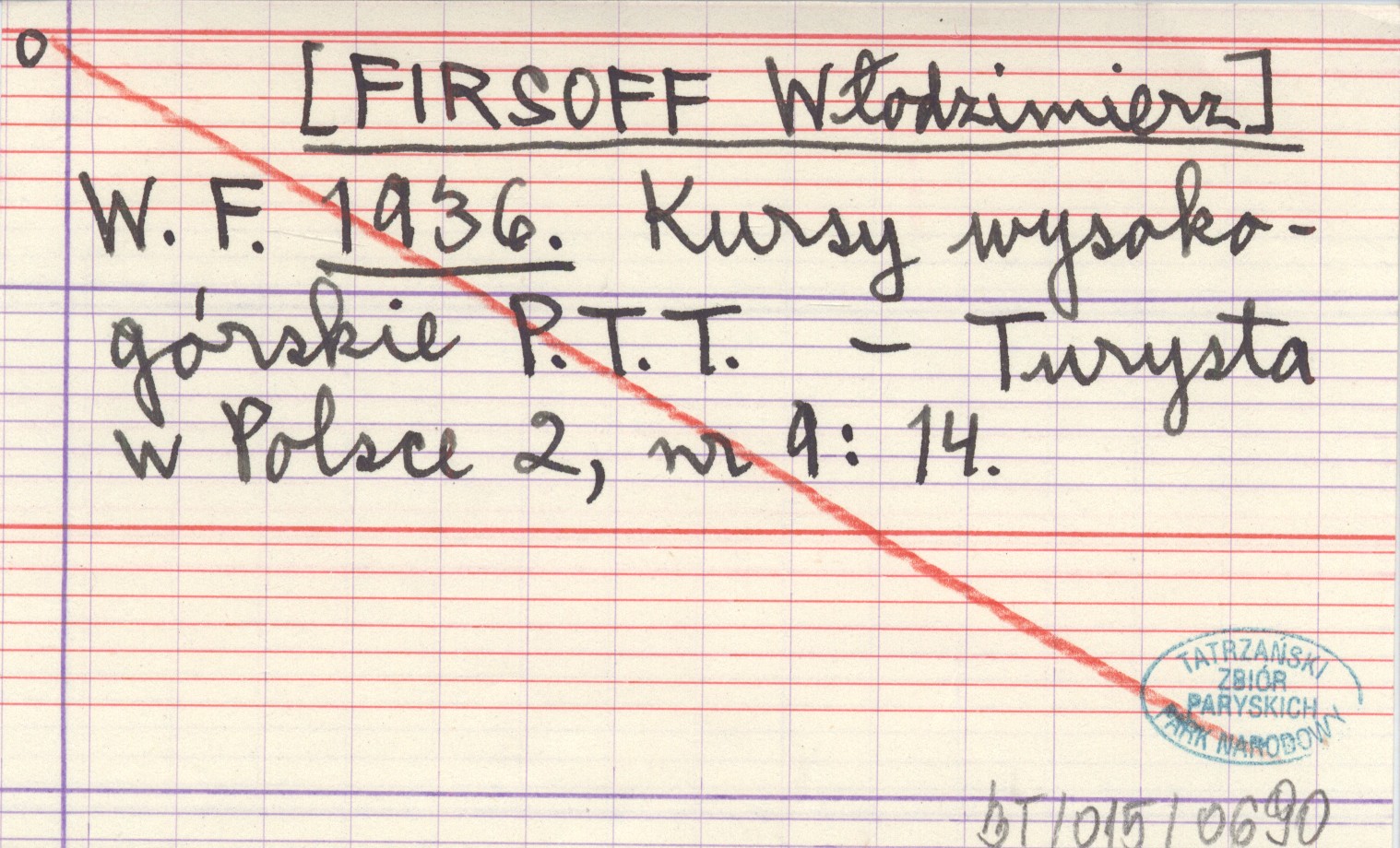 W. F. [FIRSOFF Włodzimierz] 1936 Kursy wysokogórskie P.T.T.