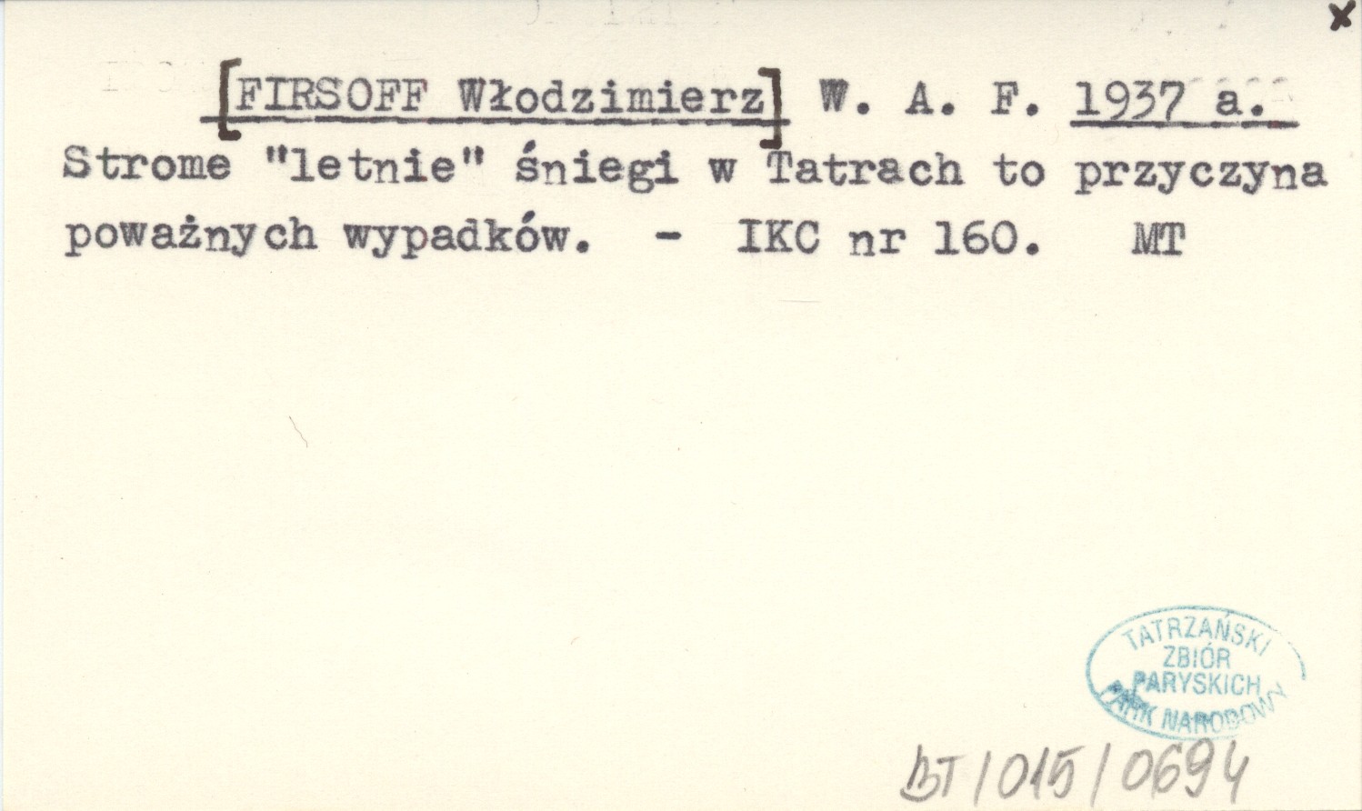 W. A. F. [FIRSOFF Włodzimierz] 1937 a Strome "letnie" śniegi w Tatrach to przyczyna poważnych wypadków.
