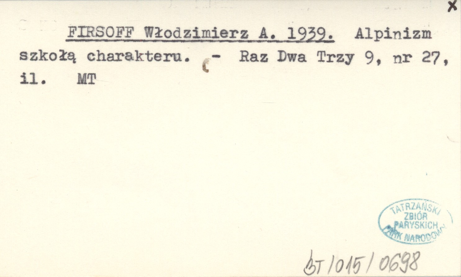 FIRSOFF Włodzimierz A. 1939 Alpinizm szkołą charakteru.