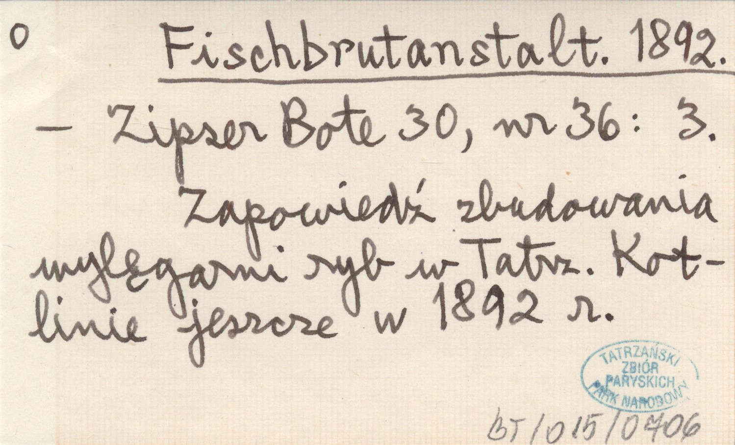 Zipser Bote, 30, nr 36: 3. Zapowiedź zbudowania wylęgarni ryb w Tatrzańskiej Kotlinie jeszcze w 1892 r.