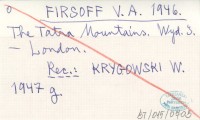 FIRSOFF V. A. 1946 The Tatra Mountains.
