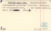 FISCHER Adam 1924 Dziesięciolecie ludoznawstwa polskiego 1914-1924. (Zestawienie bibljograficzne).