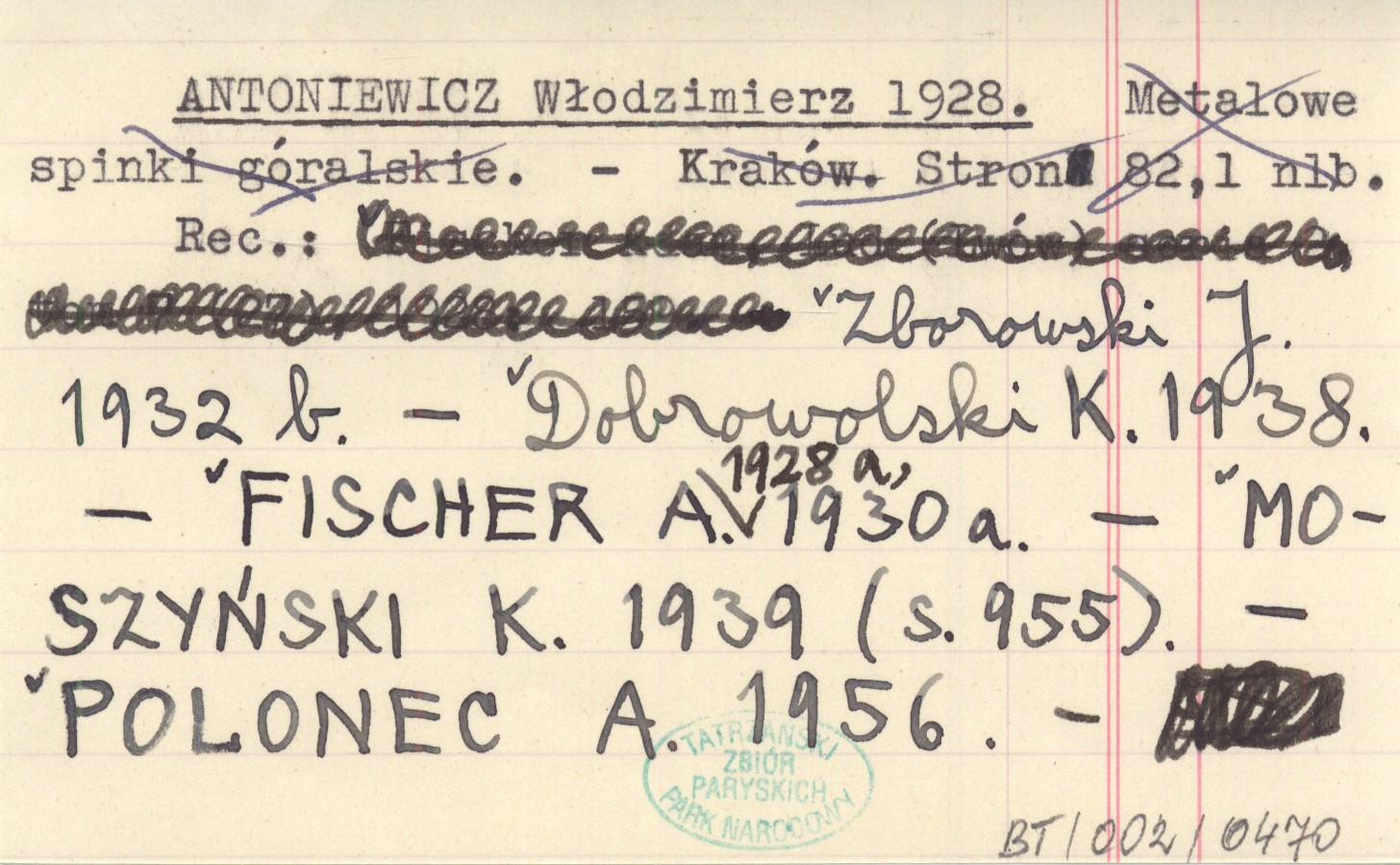 Kraków , 82, [1] s. REC: ZBOROWSKI J. 1932 b ; DOBROWOLSKI K. 1938 ; FISCHER A. 1928 a, 1930 a ; MOSZYŃSKI K. 1939 (955 s.) ; POLONEC A. (1956) ;
