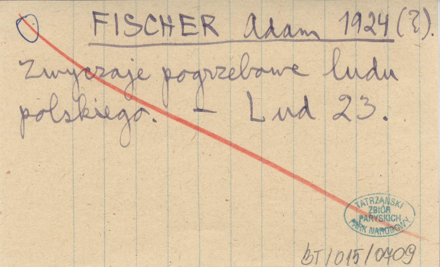 FISCHER Adam 1924 (?) Zwyczaje pogrzebowe ludu polskiego.