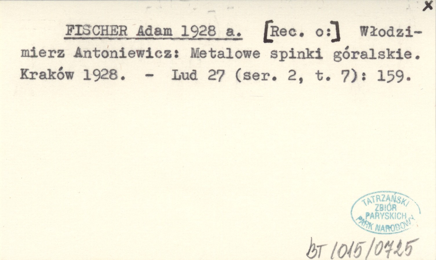FISCHER Adam 1928 a [Rec. o:] Włodzimierz Antoniewicz: Metalowe spinki góralskie. Kraków 1928.