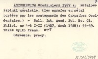 ANTONIEWICZ W. 1928 a Les agrafes en métal portées par les montagnards des Carpates occidentales.