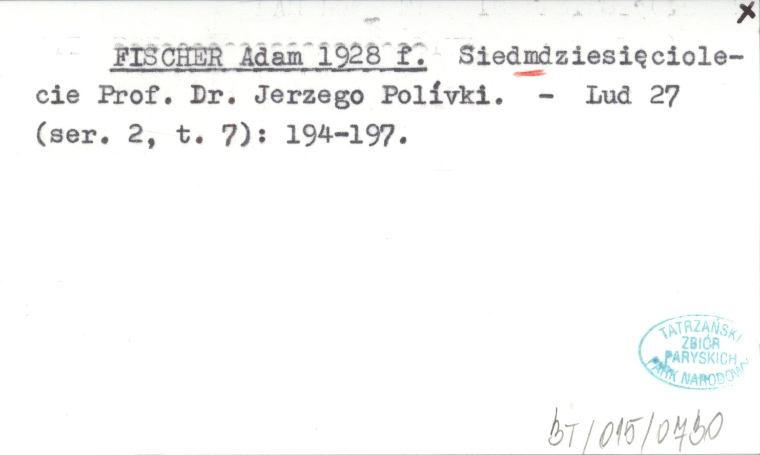 FISCHER Adam 1928 f Siedmdziesięciolecie Prof. Dr. Jerzego Polívki.