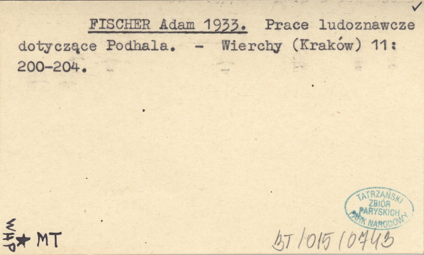 FISCHER Adam 1933 Prace ludoznawcze dotyczące Podhala.