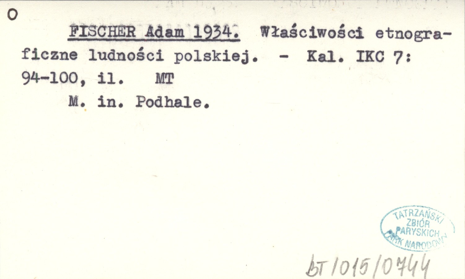 FISCHER Adam 1934 Właściwości etnograficzne ludności polskiej.