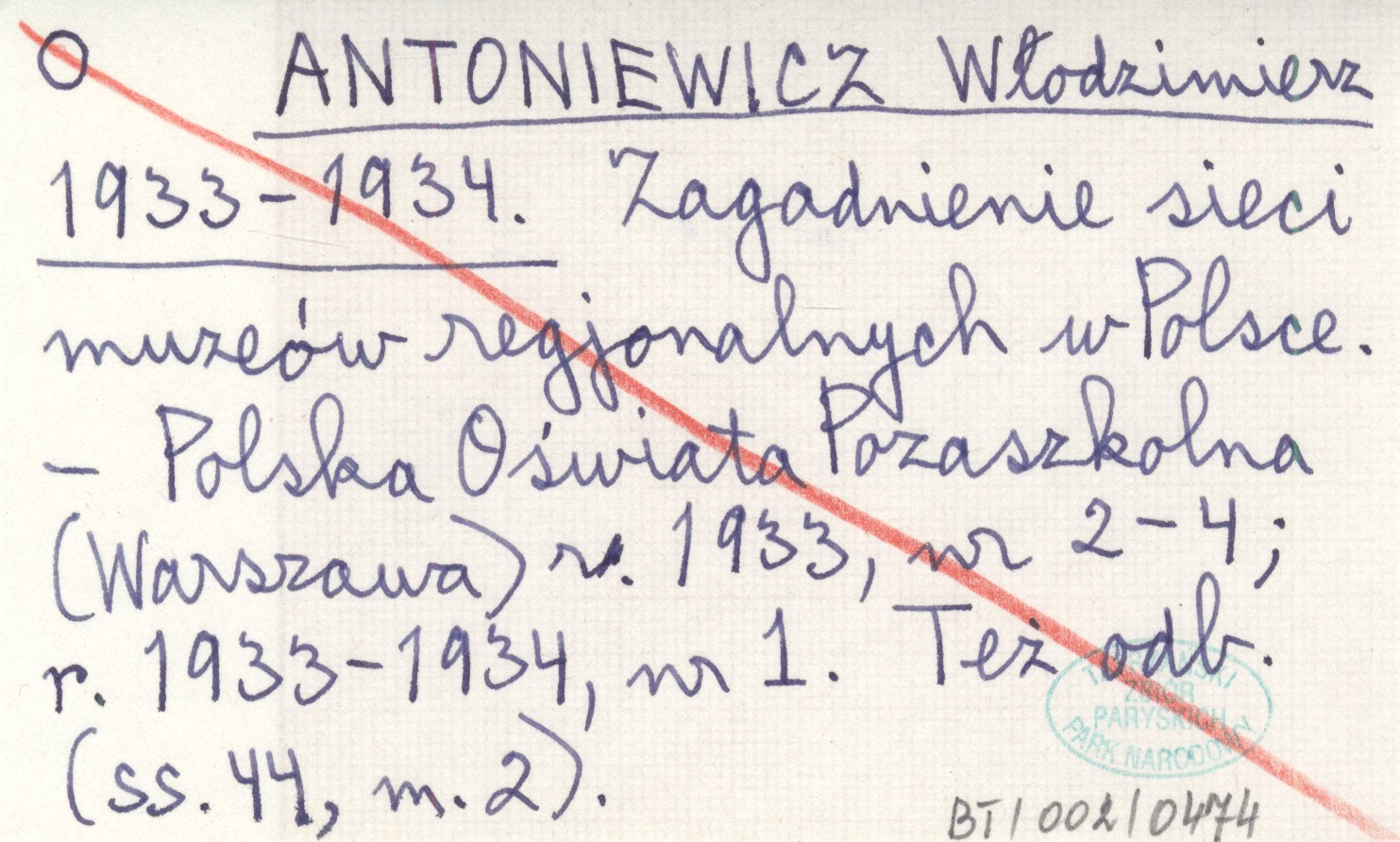 ANTONIEWICZ Włodzimierz 1933-1934 Zagadnienie sieci muzeów regjonalnych w Polsce.