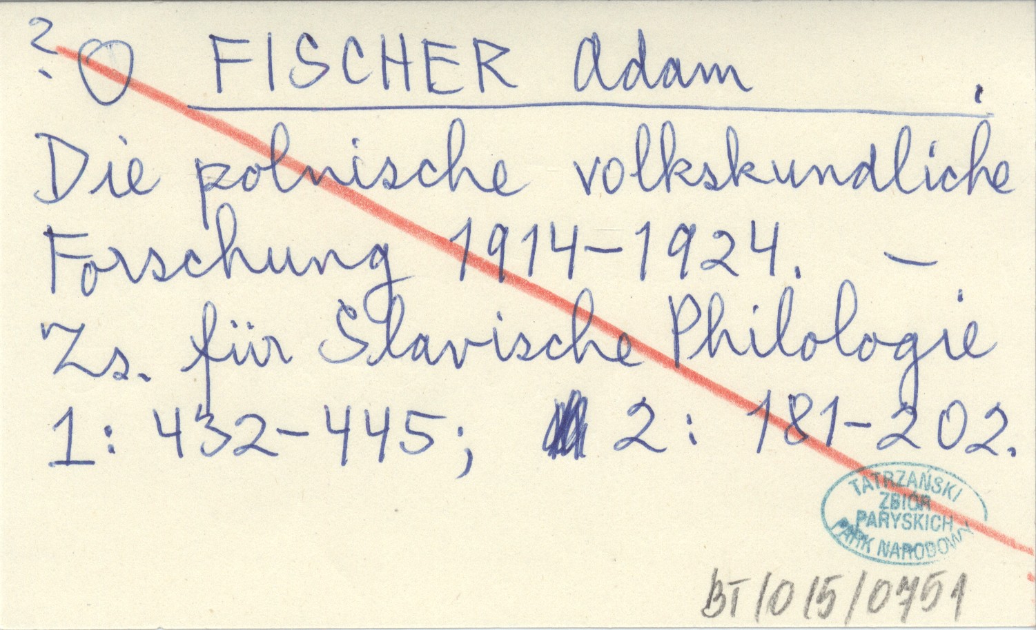 FISCHER Adam Die polnische volkskundliche Forschung 1914-1924.