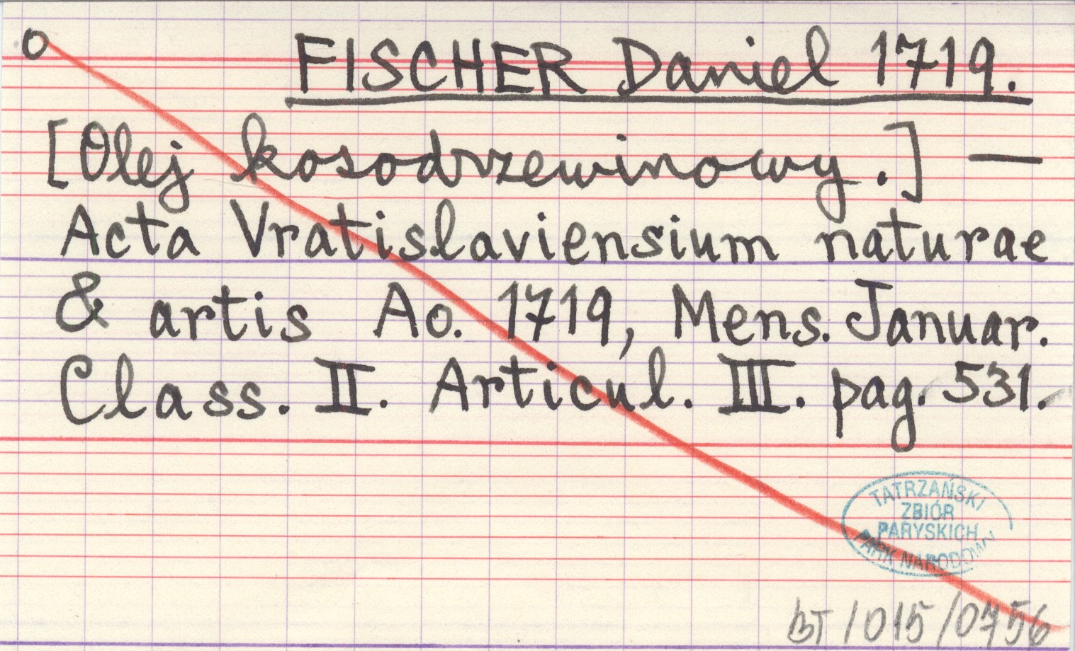 Acta Vratislaviensium naturae & artis, Ao. 1719, Mens. Januar. Class. II. Articul. III. pag. 531.