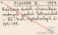 FISCHER E. 1959 Bakterie dwóch zbiorników wodnych jaskiń tatrzańskich.