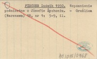 FISCHER Ludwik 1950 Wspomnienie pośmiertne o Józefie Żychoniu.