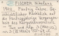 FISCHER Nikolaus 1922 Fünfzig Jahre. Geschichtlicher Rückblick auf die fünfzigjährige Vergangenheit des Karpathenvereines.