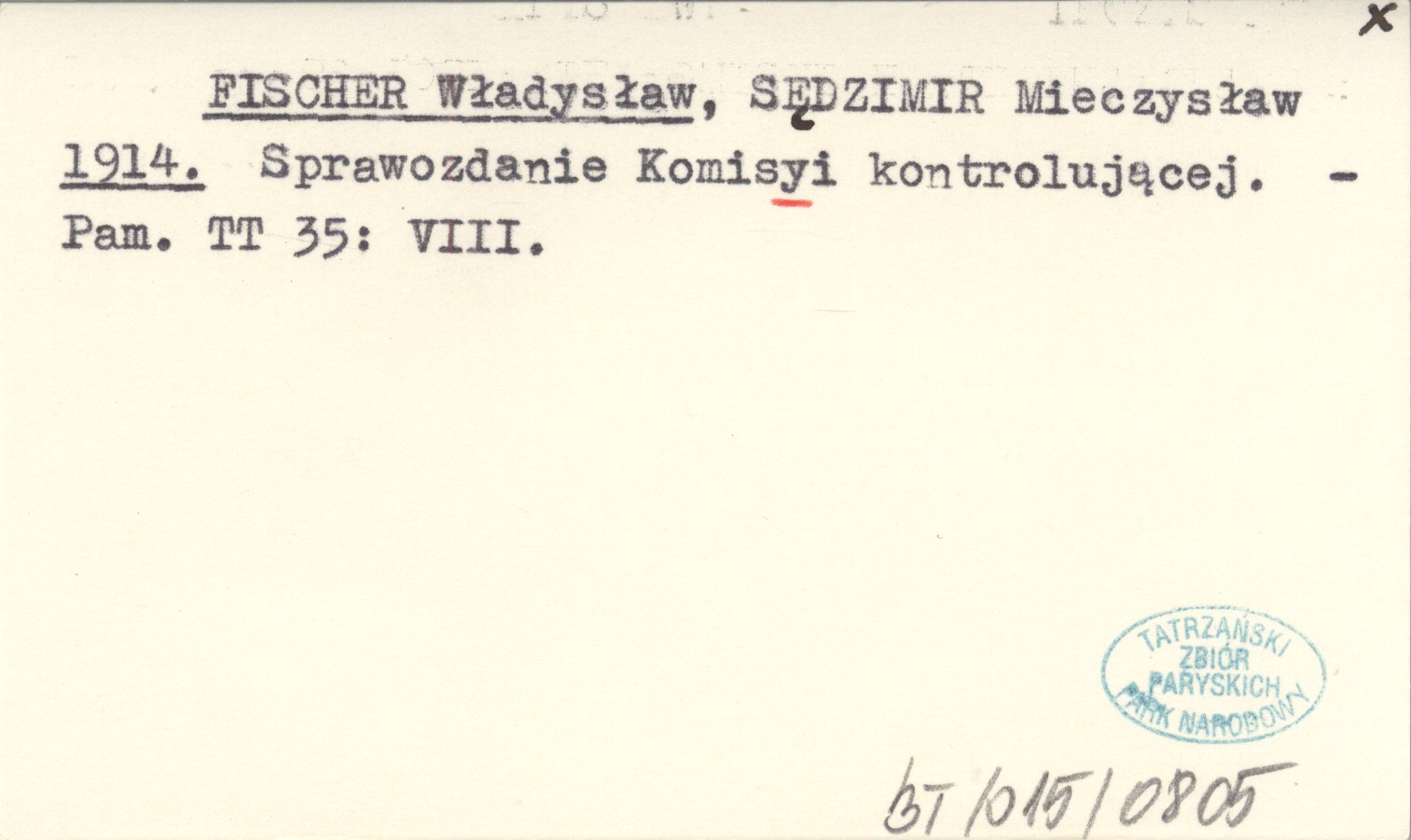 FISCHER Władysław SĘDZIMIR, Mieczysław. ; 1914 Sprawozdanie Komisyi kontrolującej.