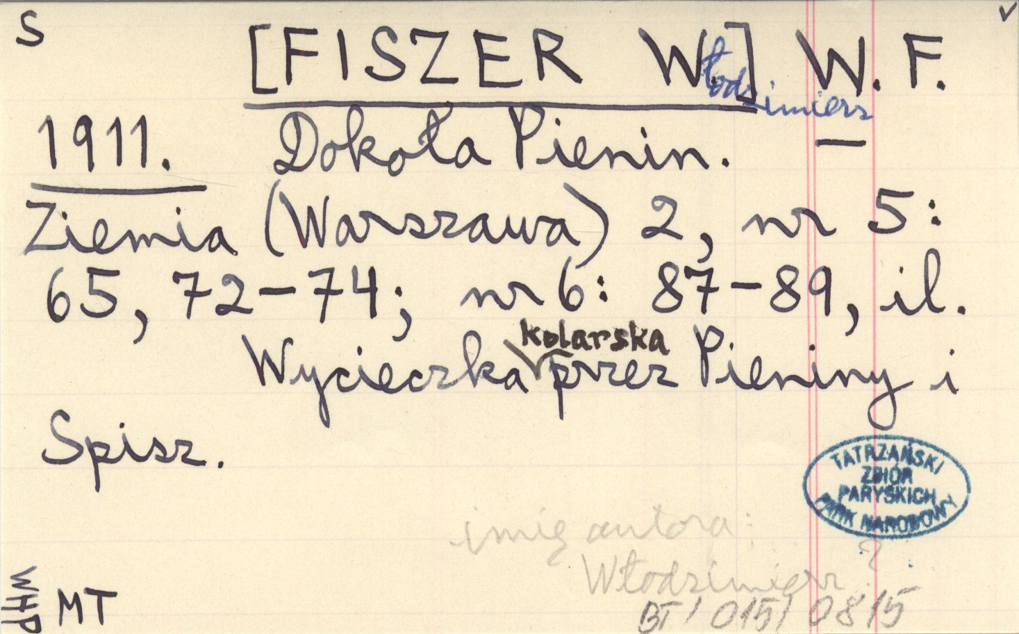 Ziemia (Warszawa) , 2, nr 5: 65, 72-74 ; nr 6: 87-89, il. Wycieczka kolarska przez Pieniny i Spisz. imię autora: Włodzimierz?