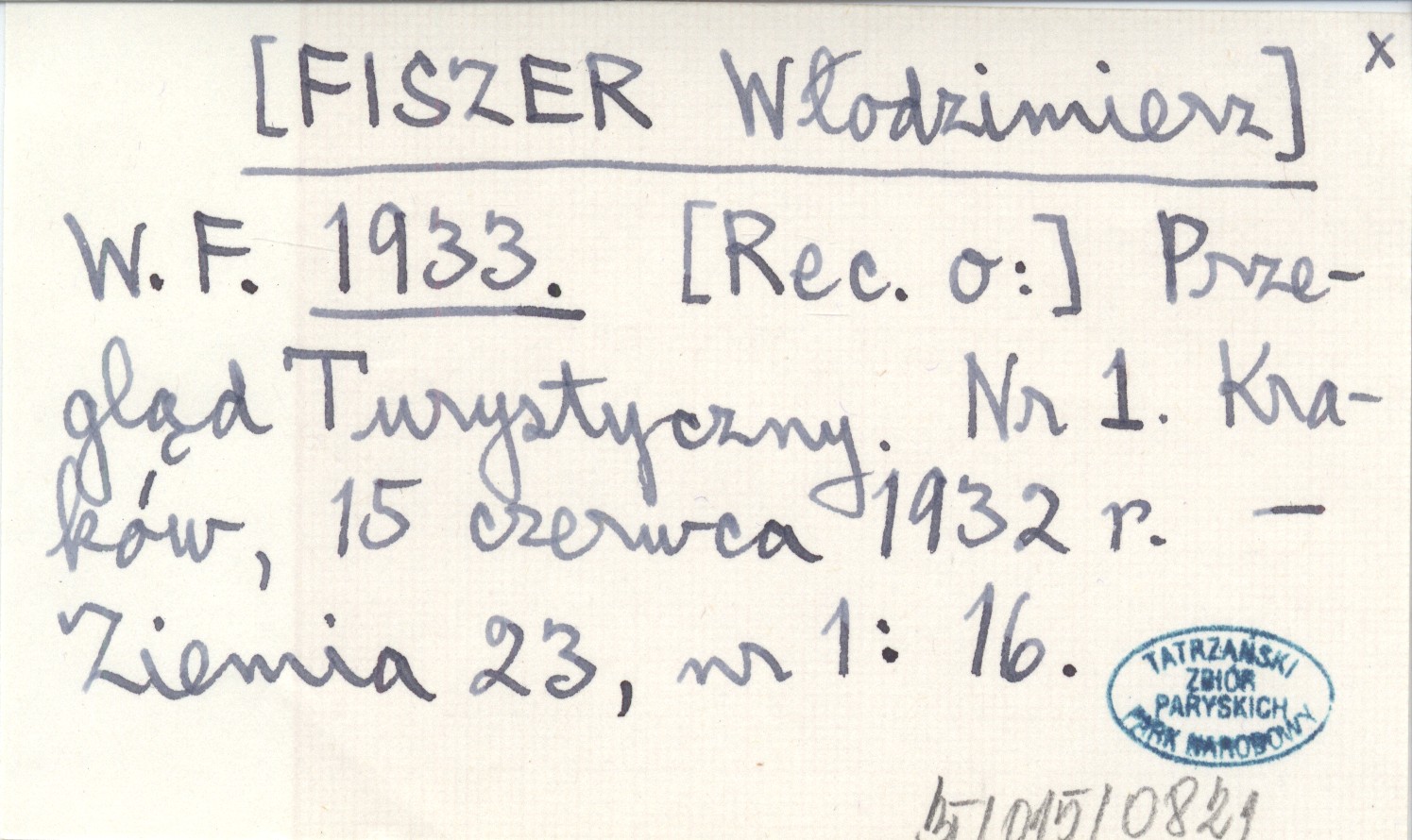 W. F. [FISZER Włodzimierz] 1933 [Rec. o:] Przegląd Turystyczny. Nr 1. Kraków, 15 czerwca 1932 r.