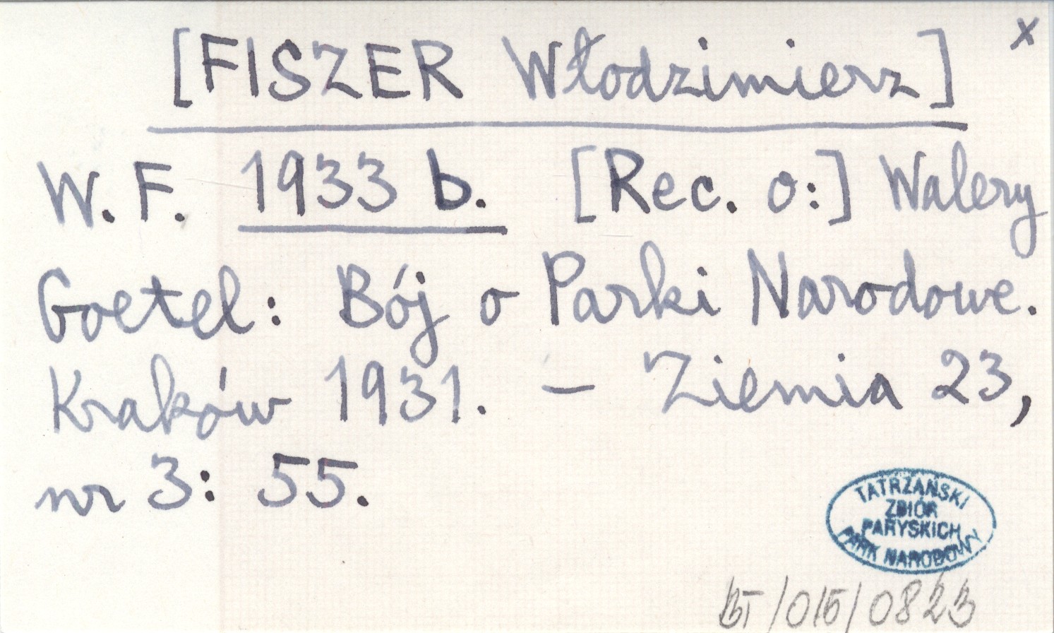 W. F. [FISZER Włodzimierz] 1933 b [Rec. o:] Walery Goetel: Bój o Parki Narodowe. Kraków 1931.