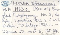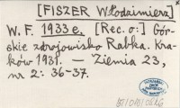 W. F. [FISZER Włodzimierz] 1933 e [Rec. o:] Górskie zdrojowisko Rabka. Kraków 1931.