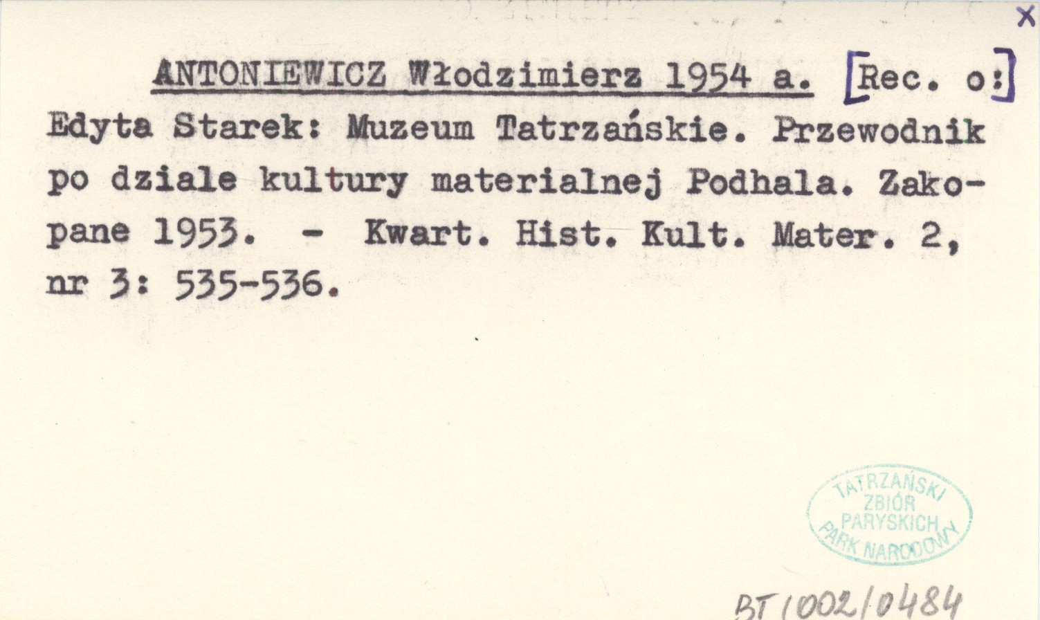 ANTONIEWICZ Włodzimierz 1954 a Edyta Starek: Muzeum Tatrzańskie. Przewodnik po dziale kultury materialnej Podhala. Zakopane 1953.