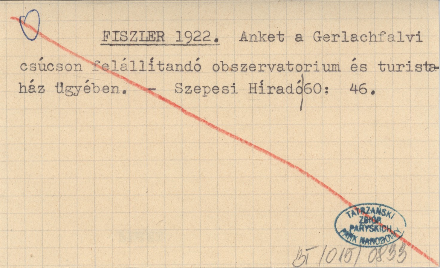 FISZLER 1922 Anket a Gerlachfalvi csúcson felállítandó obszervatorium és turistaház ügyében.