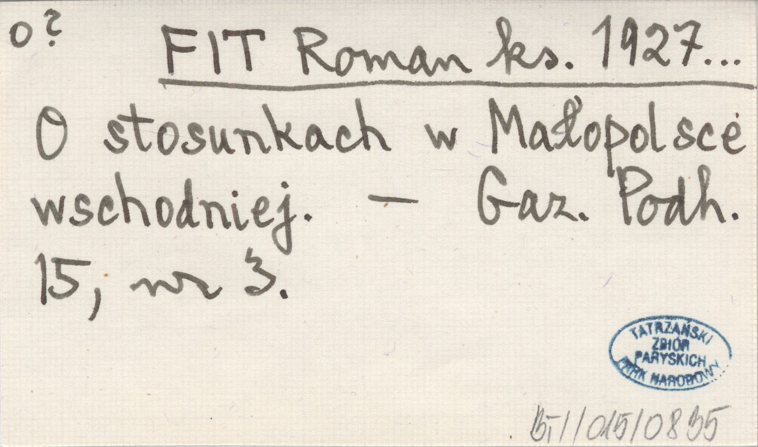 FIT Roman ks. 1927... O stosunkach w Małopolsce wschodniej.