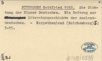 FITTBOGEN Gottfried 1932 Die Dichtung der Zipser Deutschen. Ein Beitrag zur Literaturgeschichte der Auslanddeutschen.