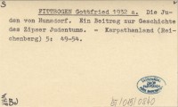 FITTBOGEN Gottfried 1932 a Die Juden von Hunsdorf. Ein Beitrag zur Geschichte des Zipser Judentums.