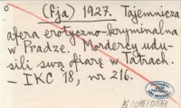 (fja) 1927 Tajemnicza afera erotyczno-kryminalna w Pradze. Mordercy udusili swą ofiarę w Tatrach.