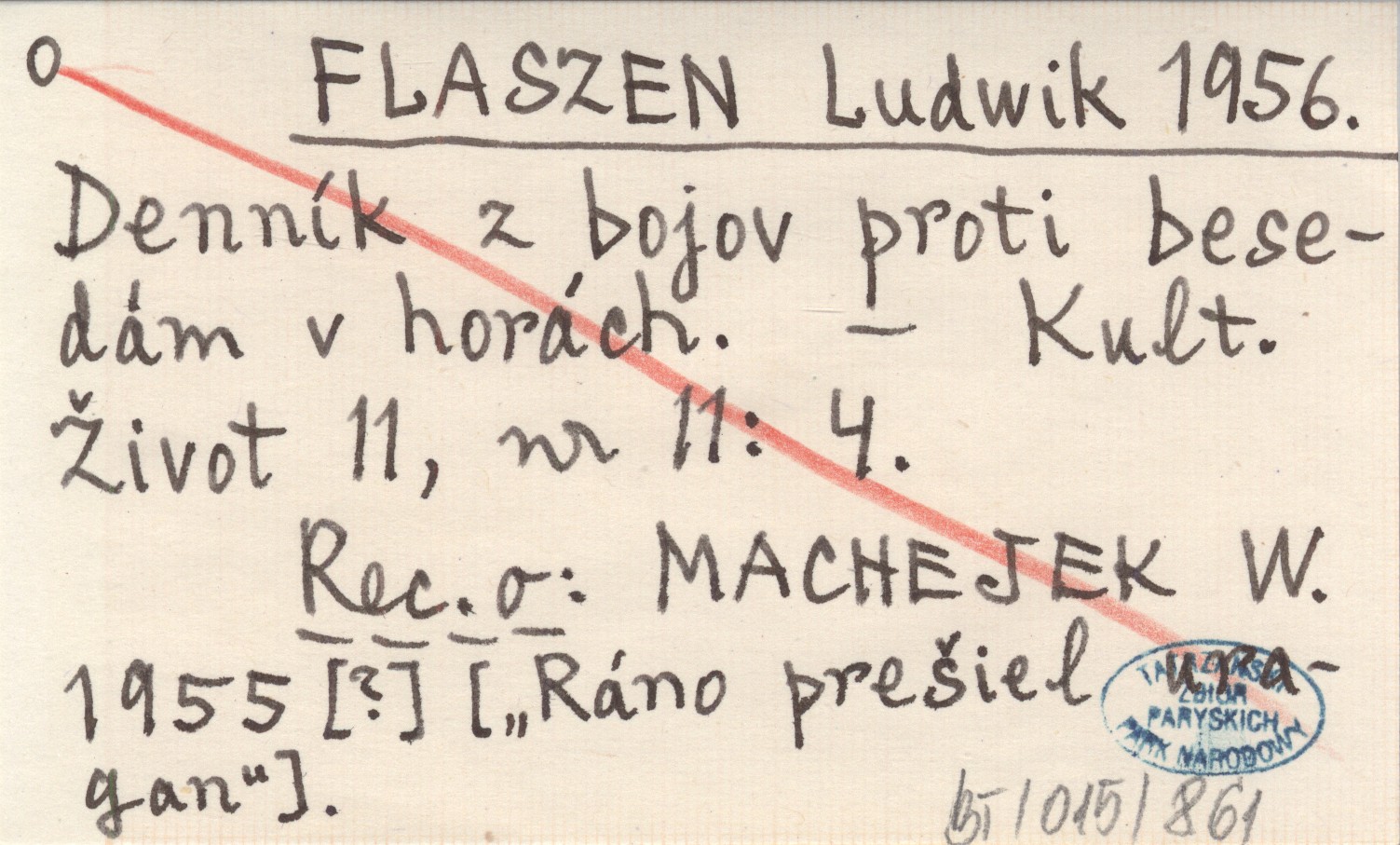 FLASZEN Ludwik 1956 Denník z bojov proti besedám v horách.