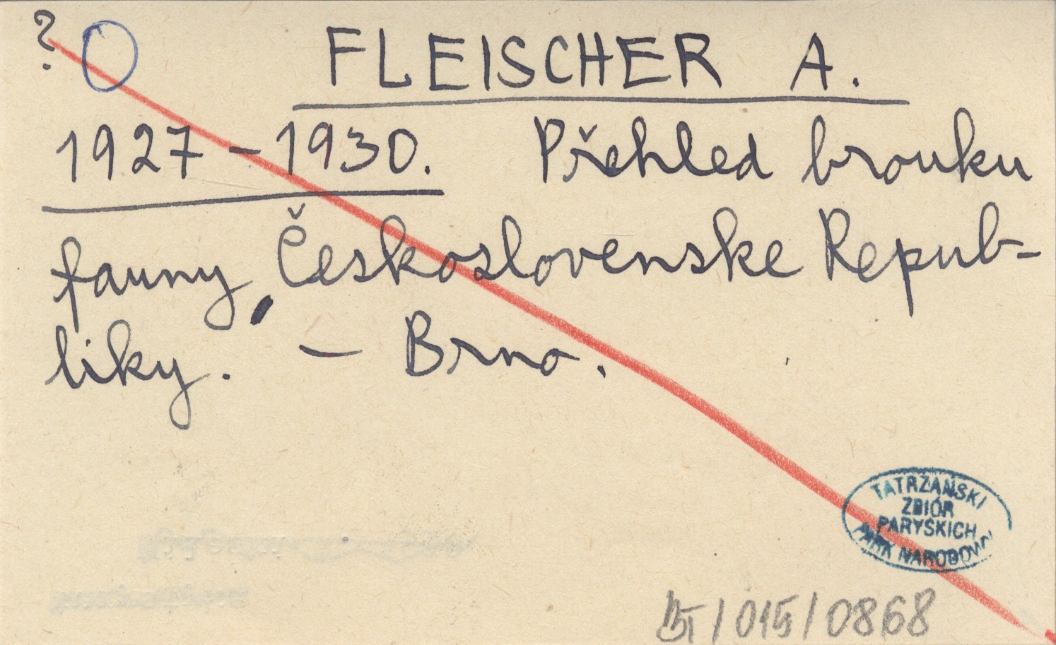 FLEISCHER A. 1927-1930 Přehled brouku fauny Československe Republiky.