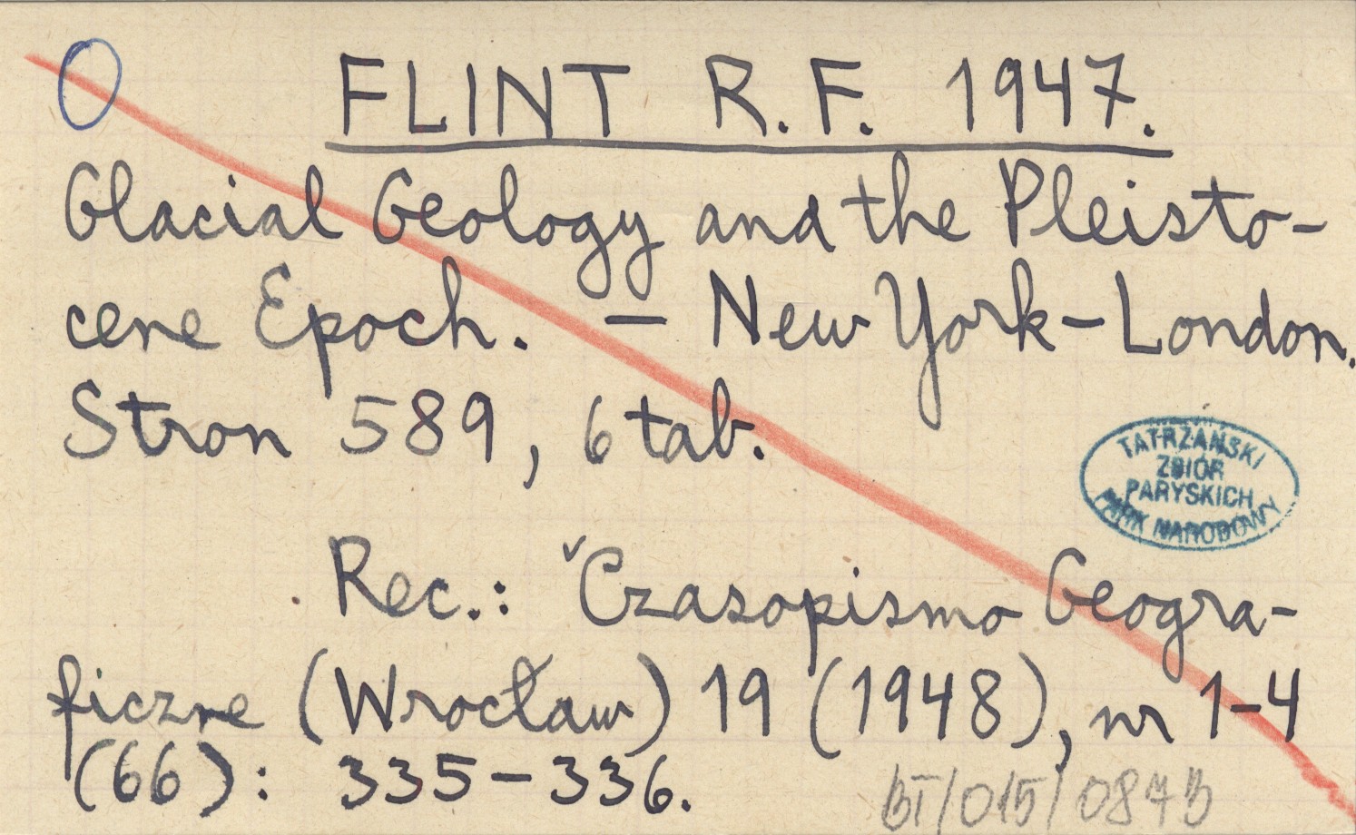 FLINT R. F. 1947 Glacial Geology and the Pleistocene Epoch.