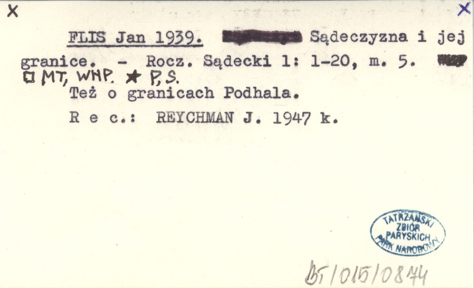 Rocznik Sądecki, 1: 1-20, m. 5. Też o granicach Podhala. REC: REYCHMAN J. 1947 k