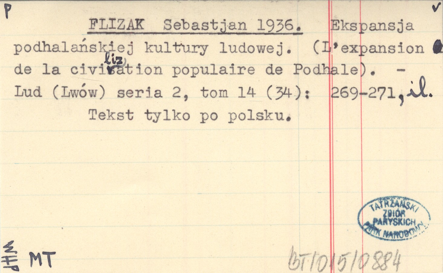 FLIZAK Sebastjan 1936 Ekspansja podhalańskiej kultury ludowej. (L'expansion de la civilization populaire de Podhale).