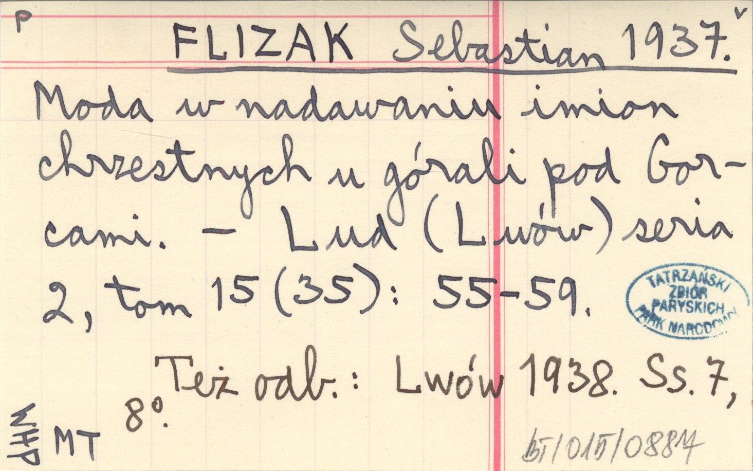 FLIZAK Sebastian 1937 Moda w nadawaniu imion chrzestnych u górali pod Gorcami.