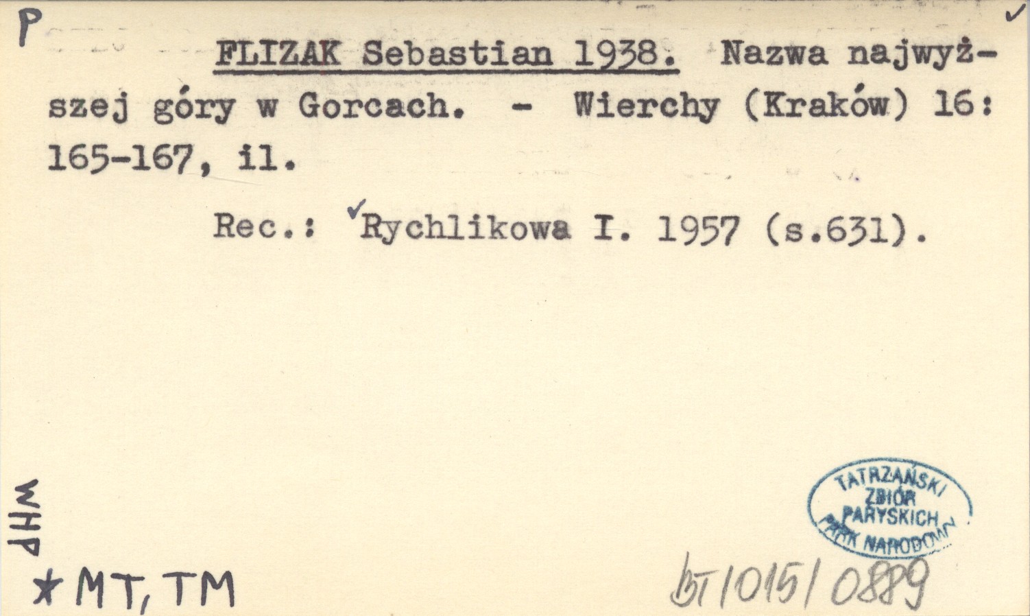 FLIZAK Sebastian 1938 Nazwa najwyższej góry w Gorcach.