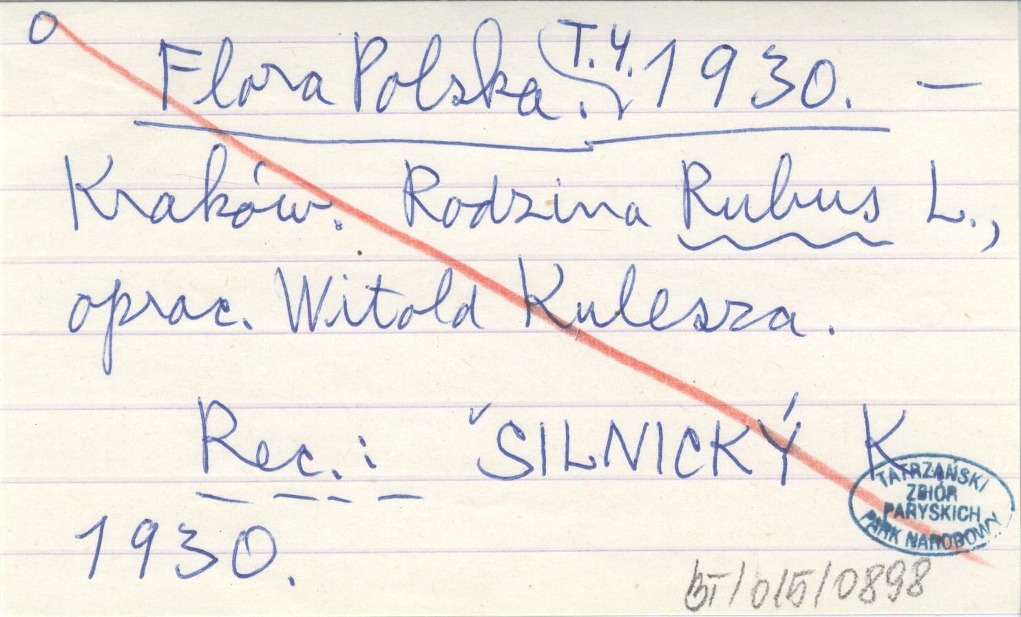 Kraków , T. 4. Rodzina Rubus L. Oprac. Witold KULESZA REC: SILNICKÝ K. 1930