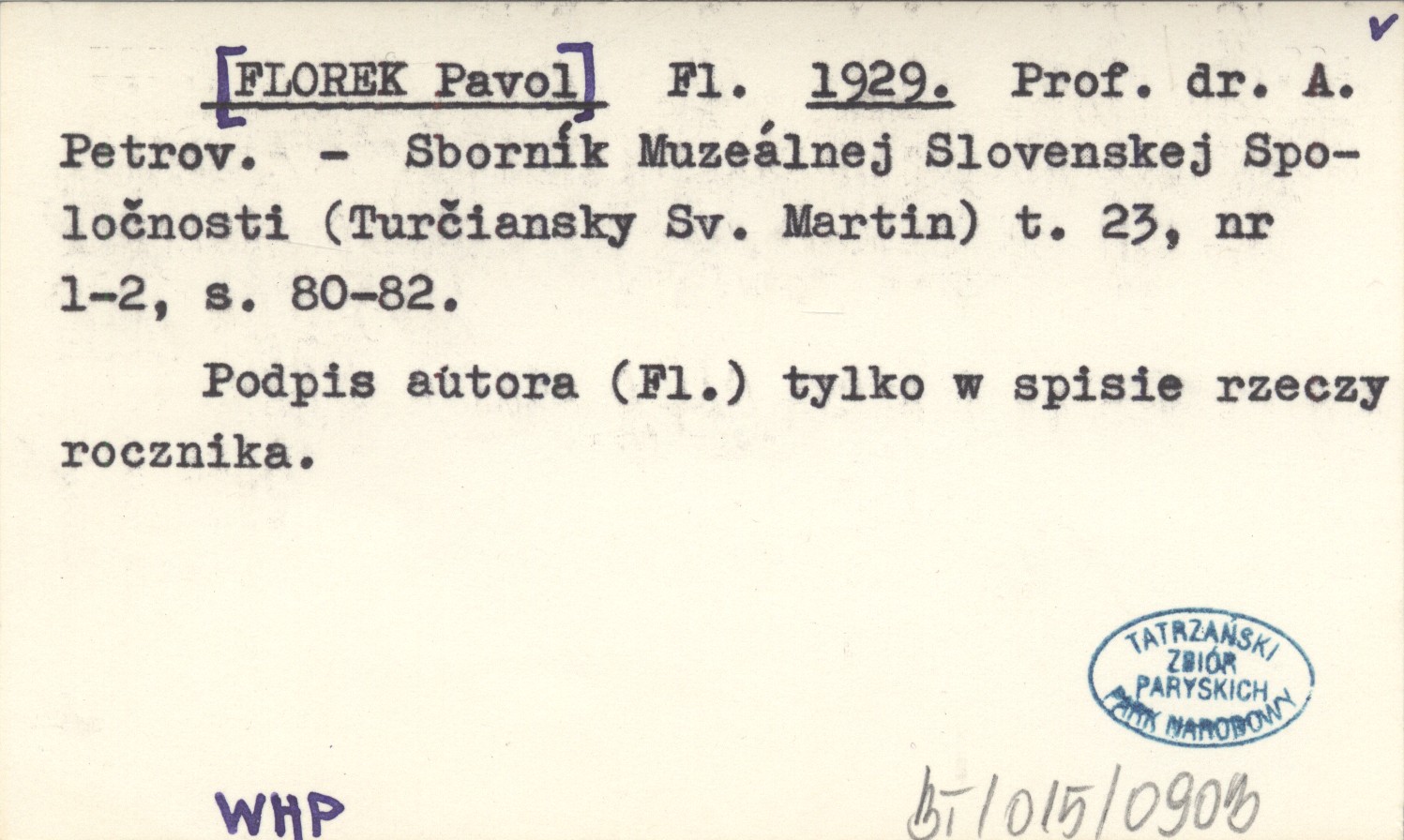 Sborník Muzeálnej Slovenskej Spoločnosti (Turčiansky Sv. Martin) , T. 23, nr 1-2: 80-82. Podpis autora (Fl.) tylko w spisie rzeczy rocznika.