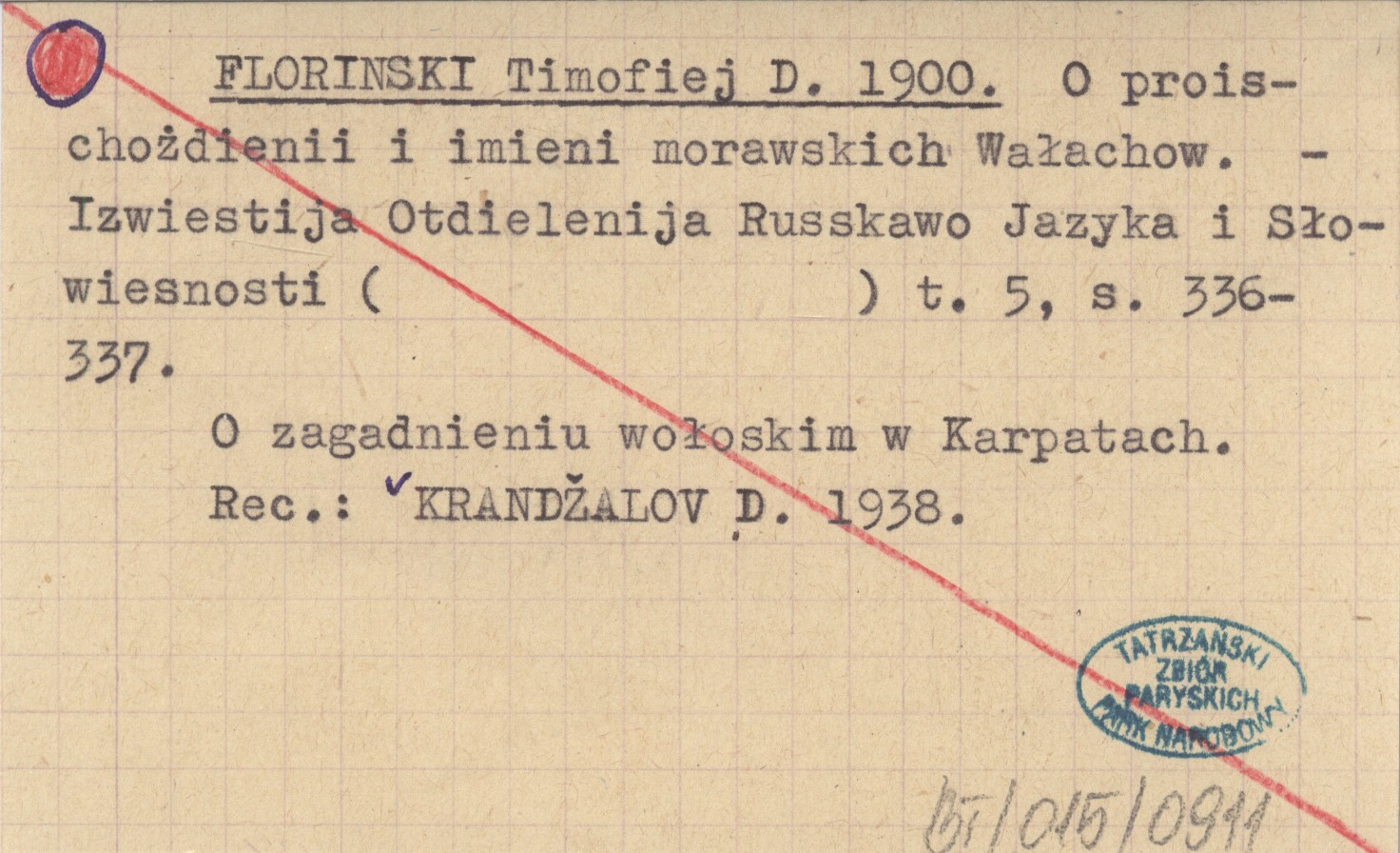 (Izwiestija Otdielenija Russkawo Jazyka i Słowiesnosti ; 5) , S. 336-337. O zagadnieniu wołoskim w Karpatach. REC: KRANDŽALOV D. 1938