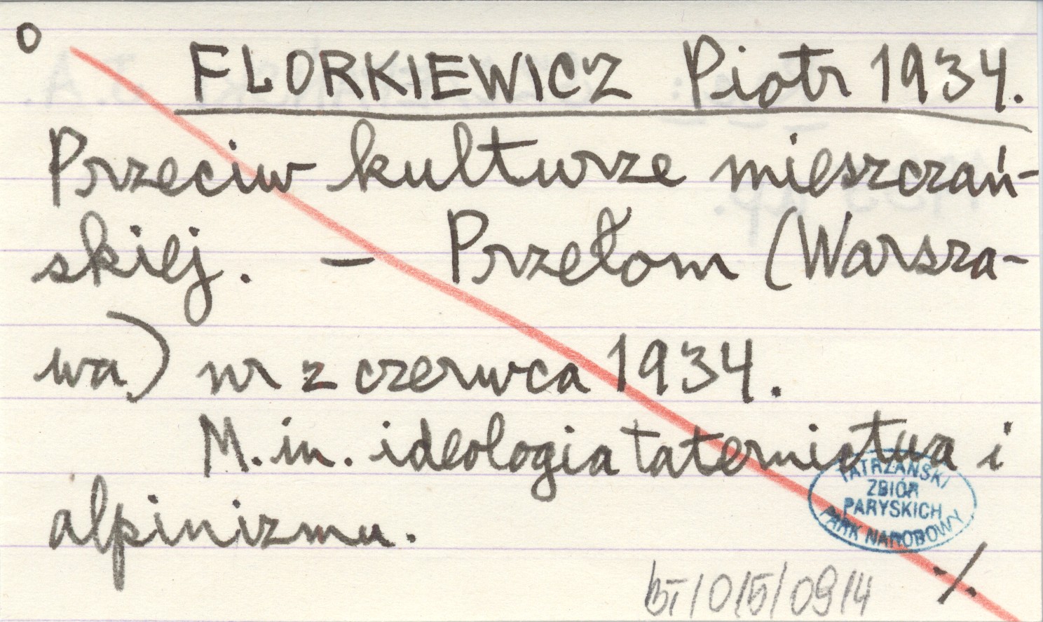 FLORKIEWICZ Piotr 1934 Przeciw kulturze mieszczańskiej.