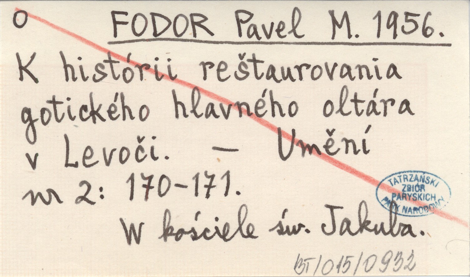 FODOR Pavel M. 1956 K histórii reštaurovania gotického hlavného oltára v Levoči.