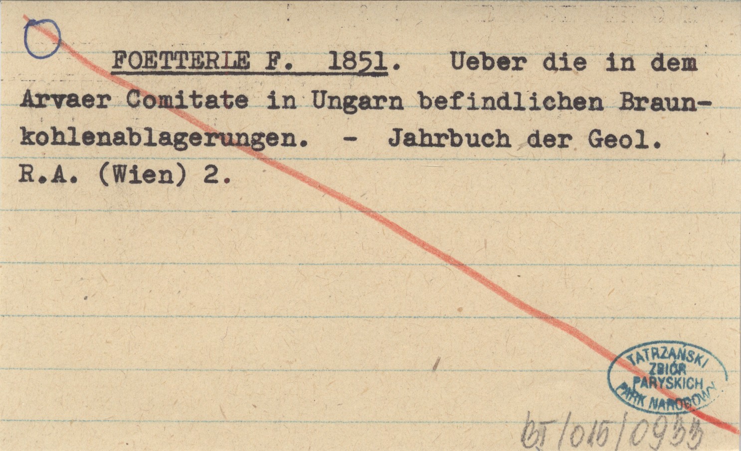 FOETTERLE F. 1851 Ueber die in dem Arvaer Comitate in Ungarn befindlichen Braunkohlenablagerungen.